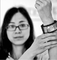 5月17日,具有完全自主知識產(chǎn)權(quán)的維信諾(固安)第六代全柔AMOLED(有源矩陣有機發(fā)光二極體面板)生產(chǎn)線,在河北固安啟動運行。圖為工作人員在展示一款柔性顯示智能可穿戴手機。新華社發(fā)