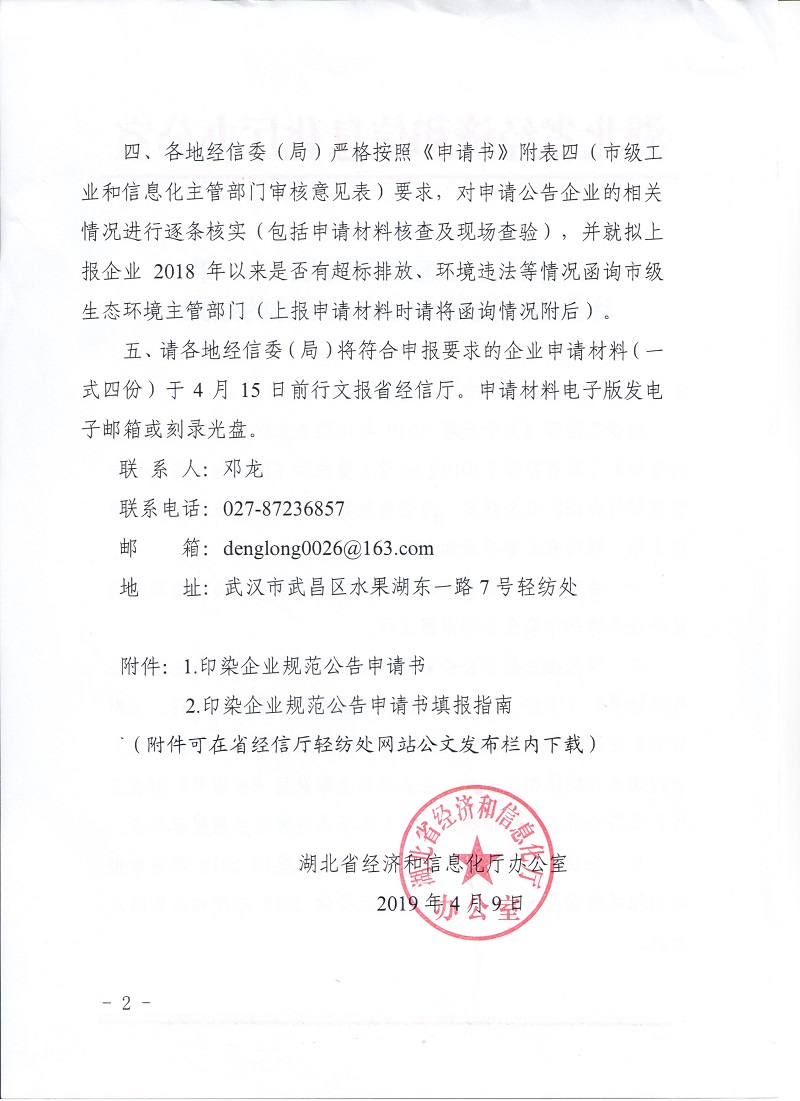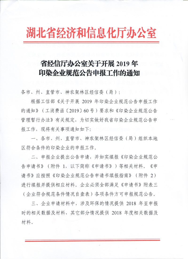 省經(jīng)信廳辦公室關(guān)于開展2019年印染企業(yè)規(guī)范公告申報(bào)工作的通知